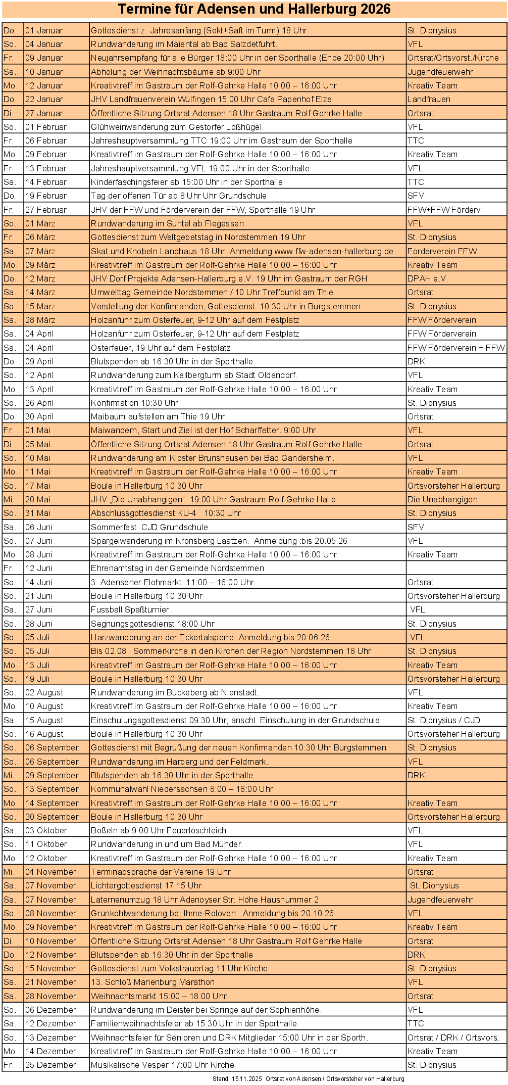 Liebe Mitbürgerinnen und Mitbürger aus Adensen und Hallerburg,